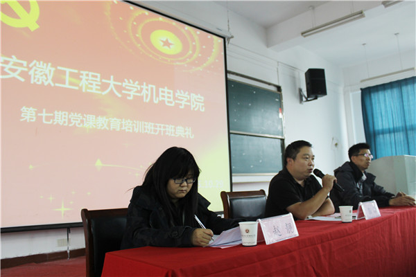 2015年10月29日12时30分,我院于西二503教室举行党校第七期党课教育培训班(文津校区)开班典礼。学生处副处长陈源、思想教育科科长谢贵勇及本期培训班班主任赵靓出席了本次典礼。党课学员张浩担任主持。